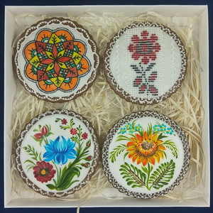 У наших тарілках, шоперах, пряниках та сувенірах ви побачите поєднання традиційних елементів Петриківського розпису, орнаментів писанок різних регіонів України та авторського стилю.